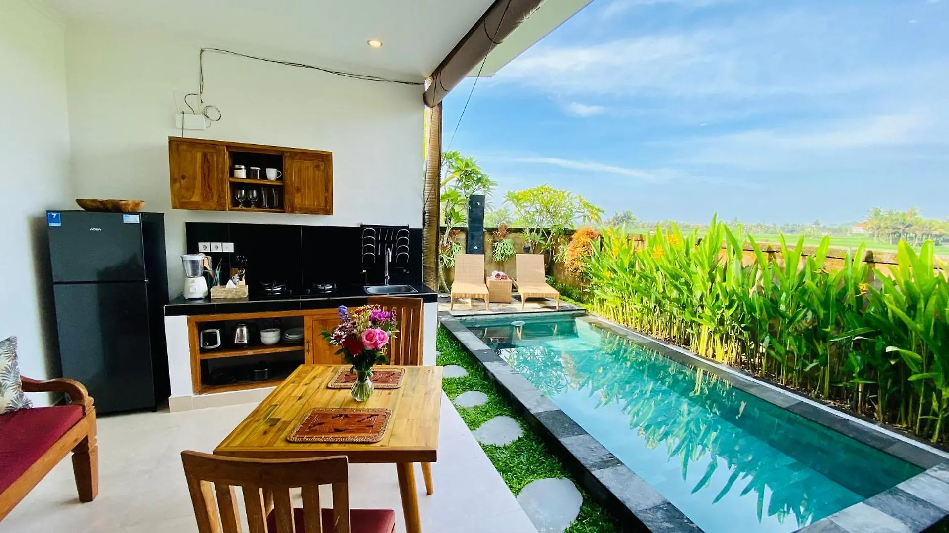 La propriété est équipée d'une cafetière/théière, ainsi que d'une kitchenette pour les repas dans la chambre. Les hôtes pourront également utiliser un réfrigérateur pour préparer leur propre repas. Wayang Restaurant sert les plats asiatiques à une courte distance de cette villa. Il faut 32 minutes en voiture depuis villa pour rejoindre l'aéroport international de Denpasar.